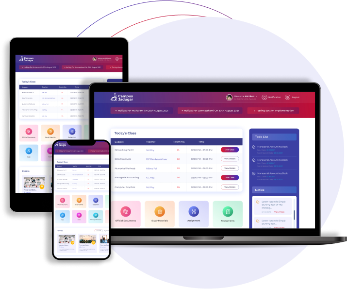 CAMPUS JADUGAR is a unique integrated campus management platform curated for the College / University, Faculty and Student community. CAMPUS JADUGAR offers many features which help to enhance the performance of the institution with a minimum effort. CAMPUS JADUGAR does it by avoiding the manual paper works and implementing automation of almost all Administrative and Academic activities. It’s a one-step solution for many activities.